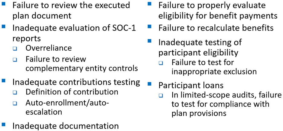 CPAs performing or interested in performing pension plan audits should consider the EBSA’s November 2023 Audit Quality Study and should acquire and utilize the AICPA’s authoritative Employee Benefit Plans: Audit and Accounting Guide (updated as of Aug. 1, 2025) and the Audit Risk Alert, Employee Benefit Plans Industry Developments — 2019, their most recent alert addressing employee benefit plan engagements.